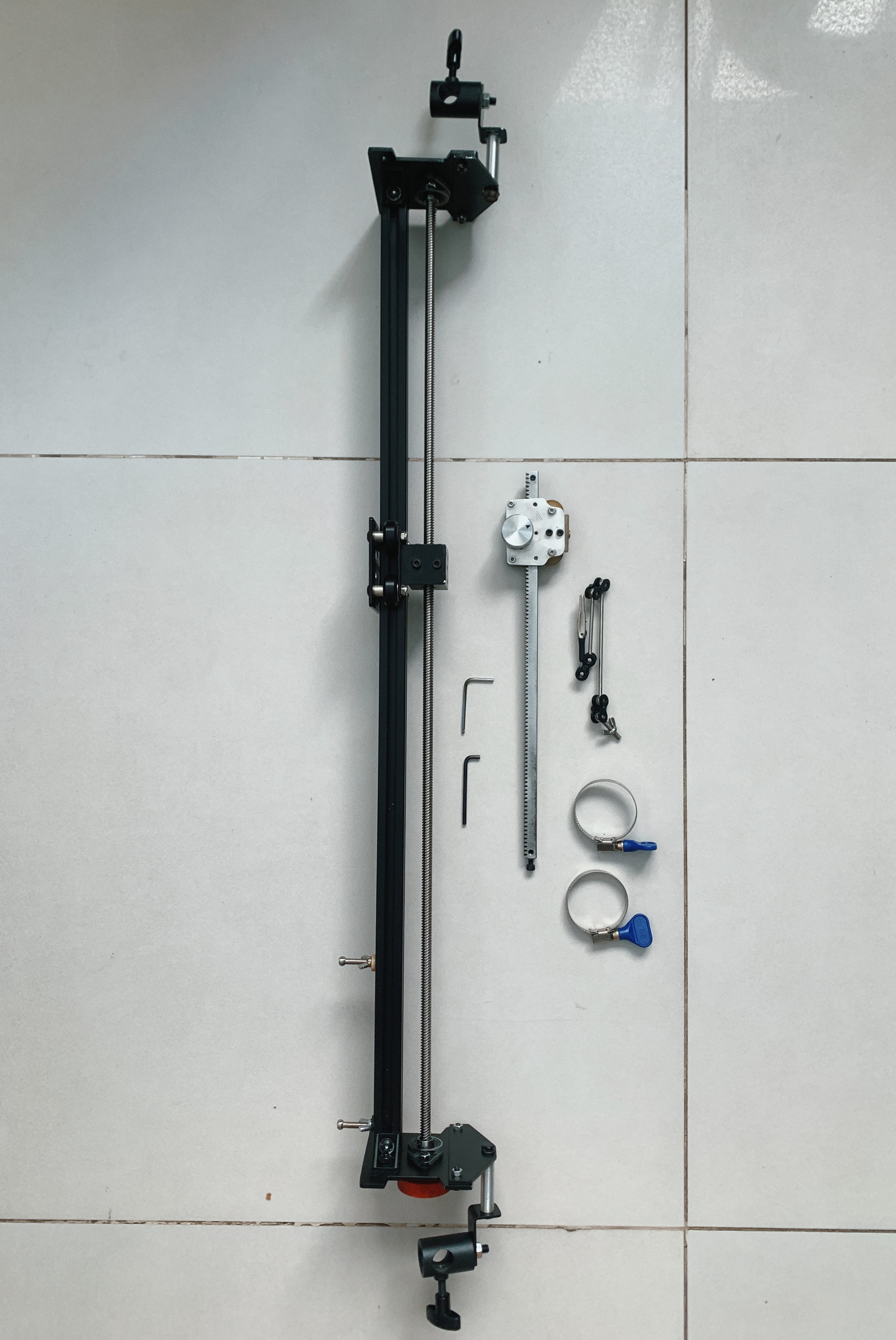 Our first prototype of dual-axis winder. The combination of DF-WX2 and DF-WX3. Vertical axis is fixed with 18cm rail while the horizontal axis can be extended up to 30cm length depend on request, but don’t go over 30cm because it is too long and clumsy rail. We think 20cm for horizontal rail is ideal for this winder.
